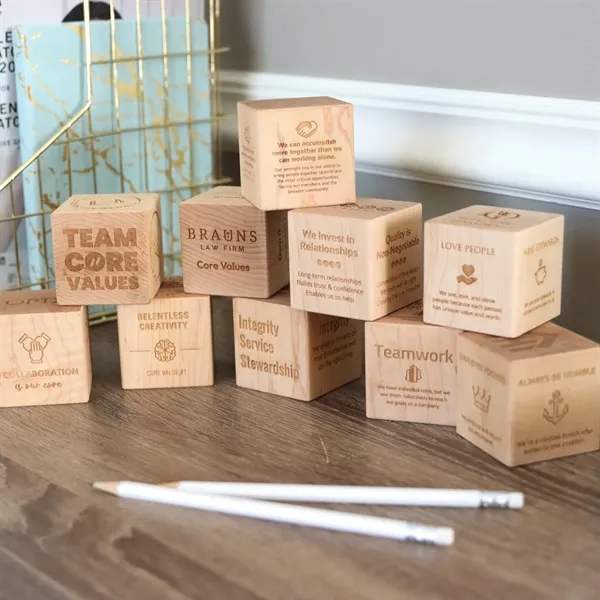 What’s your why? People want to passionately believe in not just what they do for their company, but why they’re doing it. Inspire and motivate leadership and employees with Core Values Statement Display Blocks™: custom engraved wood desktop gifts to display and reinforce the core values behind a company’s mission. Sustainably handmade in USA. Organic finish. One tree planted for every block sold. The product name “Core Values Statement Display Block” is protected by common law trademark rights and pending U.S. federal trademark registration. All content related to this product, including text, images, and descriptions is protected by U.S. Copyright law. Unauthorized use, reproduction, duplication or distribution of these materials is strictly prohibited and may result in legal action.